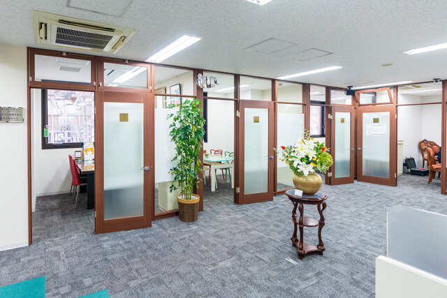 本社は壁を隔てることなくオープンスペースのオフィス。常に部門を超えたスタッフ同士のコミュニケーションが活発になるよう配慮されています。部門によっては週に1回の席替えも♪ 相続サポートセンターは2021年に移転、完全予約制の面談スペース。その他、スタッフ専用休憩室、お客様向けセミナーや社内会議を行う研修センターなど。